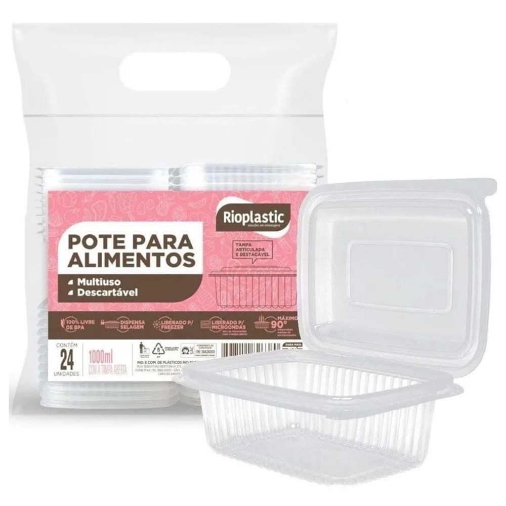 MARMITA FIT RETANGULAR 1000ML COM TAMPA 24UN